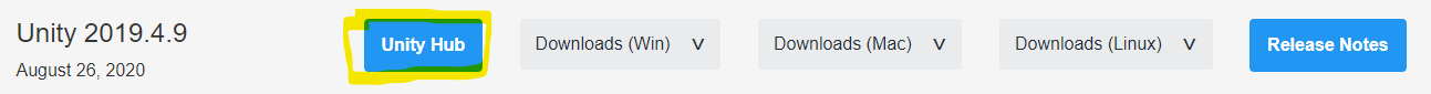 Download and install Unity in version 2019.4.9 supported by the game. Go to the Unity archive, scroll down to version Unity 2019.4.9, and select the one that suits your operating system. We recommend using Unity Hub, which helps you manage your Unity versions and projects. See the screenshot below: